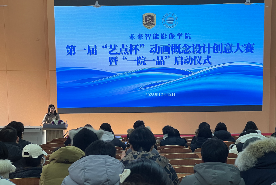 2025年12月12日,未来智能影像学院在A430阶梯教室隆重举行第一届“艺点杯”动画概念设计创意大赛开幕式暨“一院一品”活动启动仪式。本次活动由学院副院长向文心主持,全体学生积极参与,标志着学院在推动艺术与科技融合、提升学生专业能力方面迈出了重要一步。
