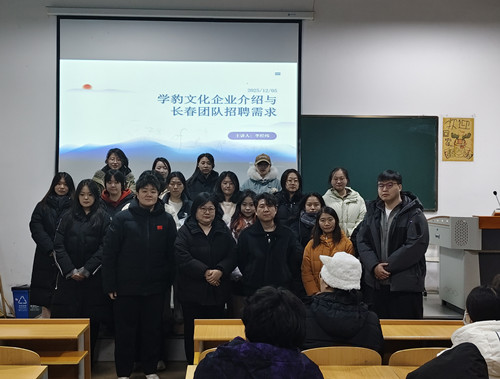 12月5日,未来智能影像学院邀请学豹文化传媒有限公司在F107教室进行了专场招聘宣讲会,学院党总支书记袁锐、艺术与科技专业教师刘桐、温佳慕、辅导员钱星宇、曲歆锐以及学院2022级100余名学生参加了活动。此次活动为学院2026届及在校学子搭建了直面行业前沿、对接优质岗位的沟通桥梁,助力青年学子实现从校园到职场的顺畅衔接。